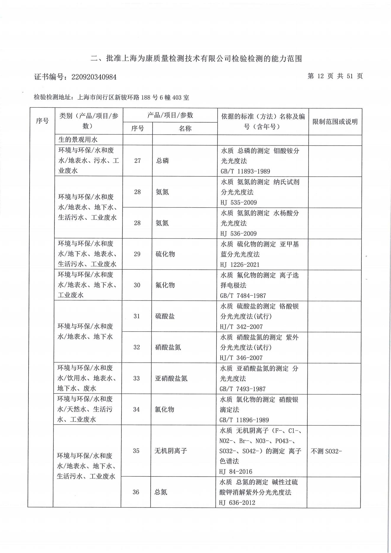 必測項(xiàng)目:色度、pH、渾濁度、臭和味、肉眼可見物、硫酸鹽、氯化物、氨氮、亞硝酸鹽氮、硝酸鹽氮、揮發(fā)酚類、耗氧量、總硬度、鐵、錳、銅、鉛、菌落總數(shù)、總大腸菌群、耐熱大腸菌群、大腸埃希氏菌。選測項(xiàng)目:必要時(shí)可以根據(jù)水箱類型、消毒方式等因素加測相關(guān)檢驗(yàn)項(xiàng)目及消毒副產(chǎn)物。
